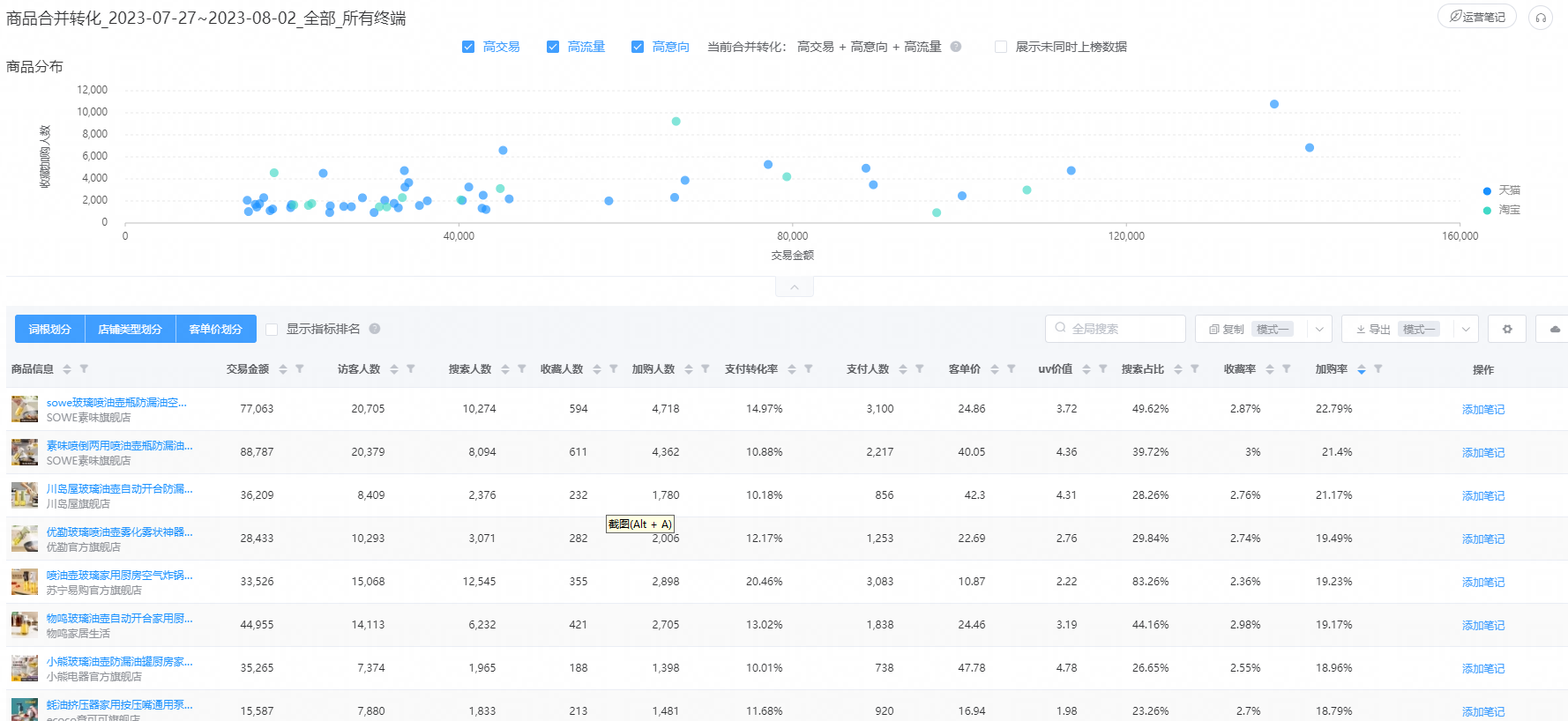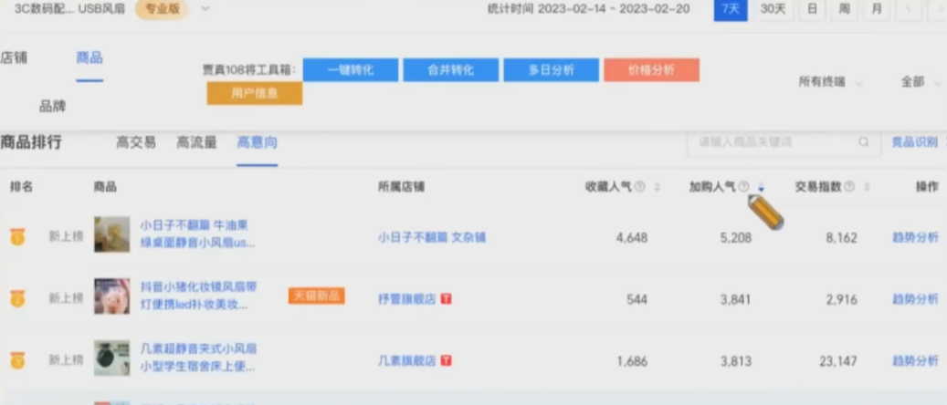 高交易和高流量别人已经做起来,因为已经来了,但是意向是说加购,有些周期长的产品,加购很有可能转换