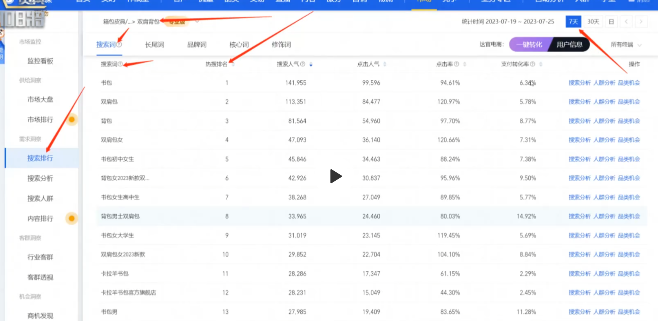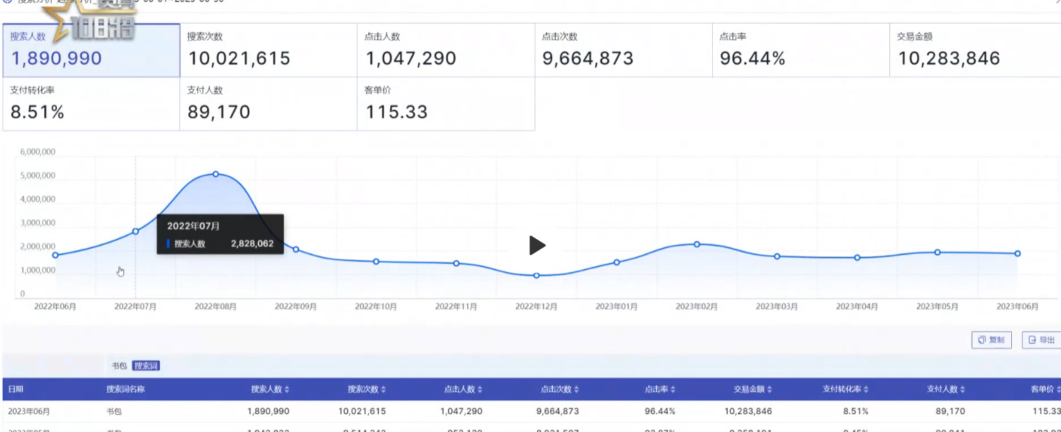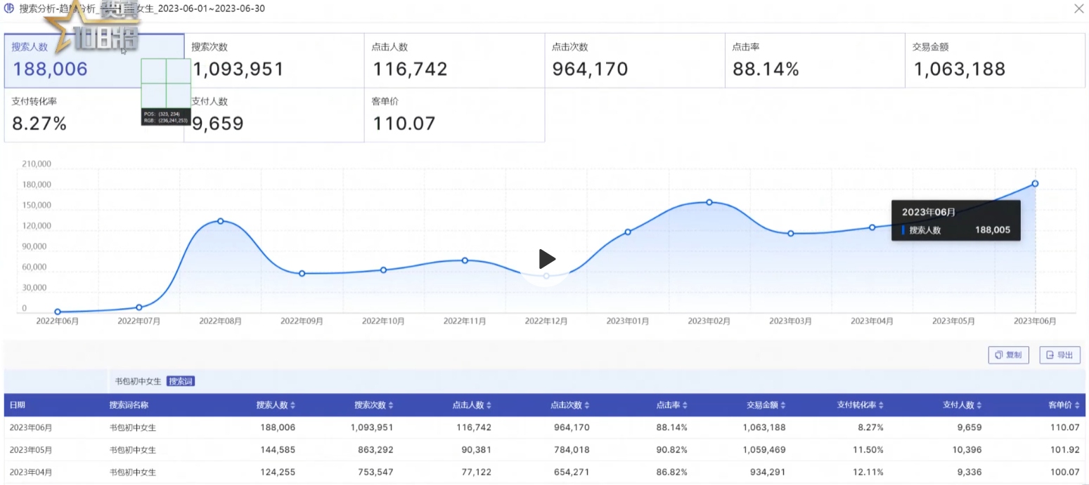昨天选了赛道,那么现在就要从这个赛道中选产品,赛道增长是因为款的支持。赛道的逻辑是整体搜索同比环比增长。