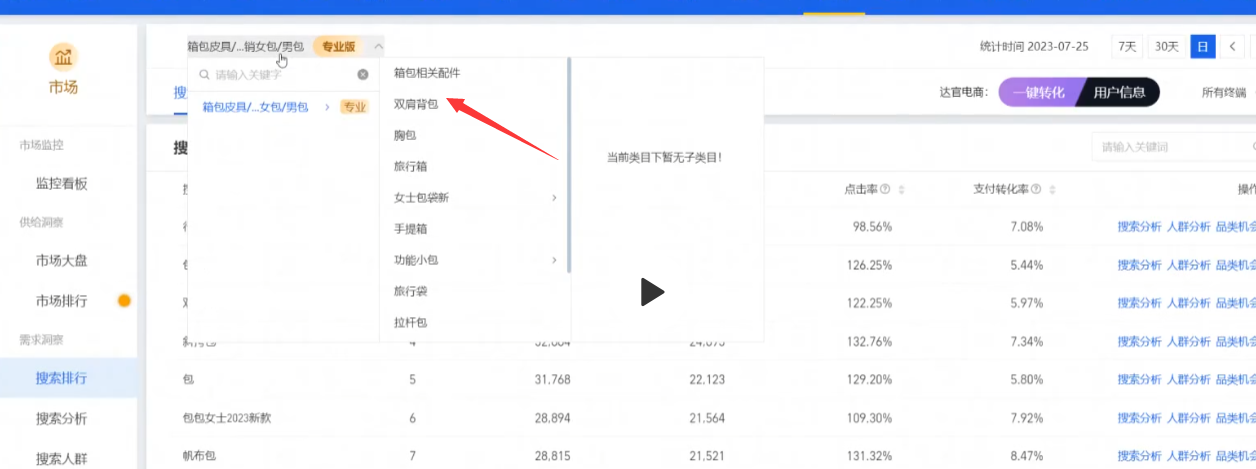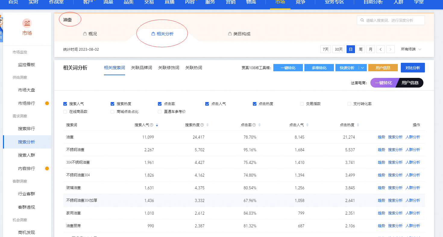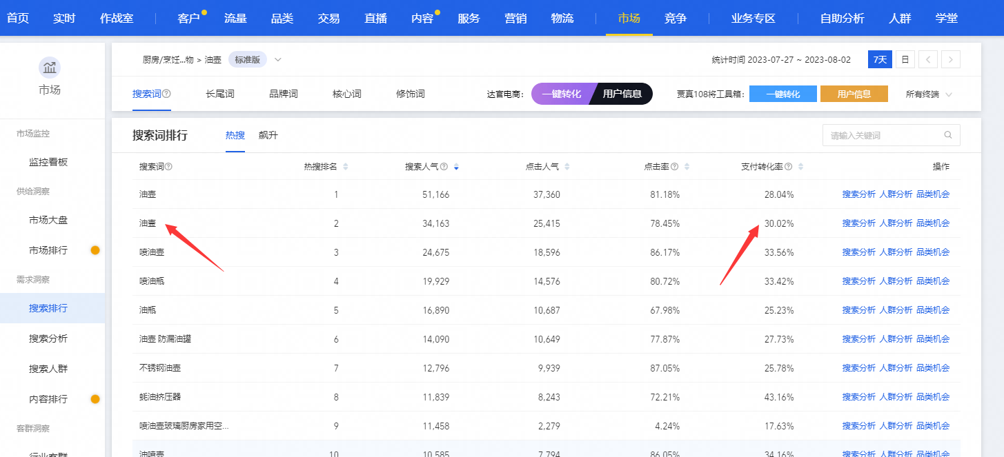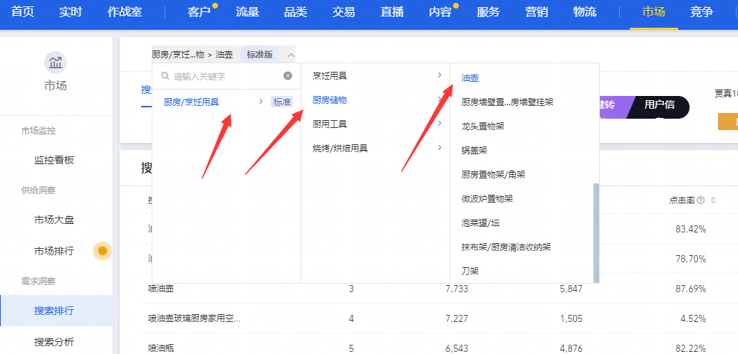 第一步找到油壶类目,因为前面选的赛道决定了是个三级类目
