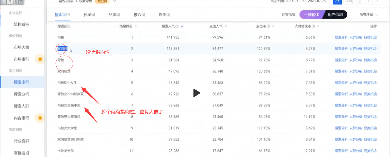 A:那个有点超纲了,我们后面会有怎么样去打?咱一步一步来找到词以后,找到对应的款,找到对应款以后进行这个,这个这个产品的一个我们说叫别自嗨,就是我这个