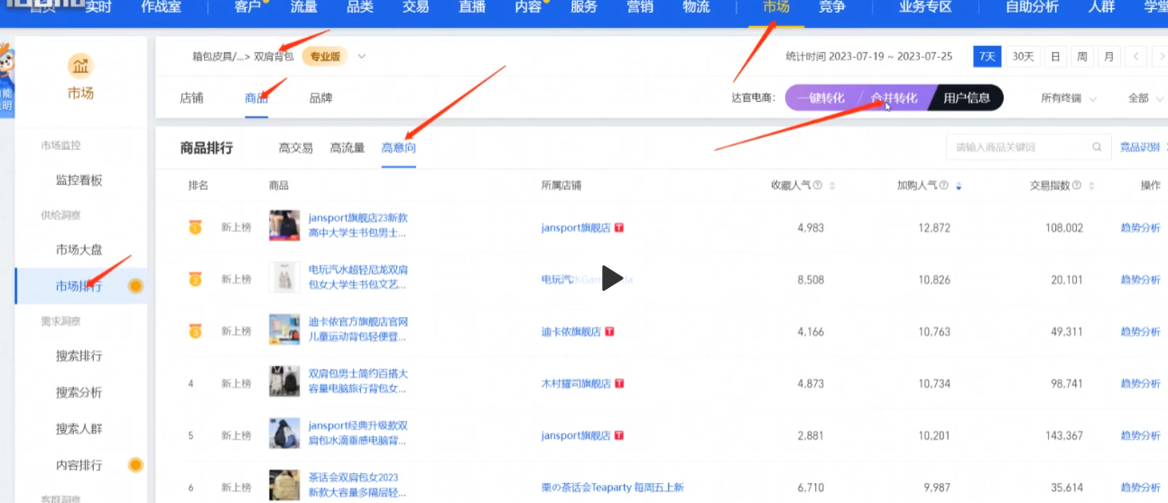 市场里面选择—-市场排行-商品-高意向