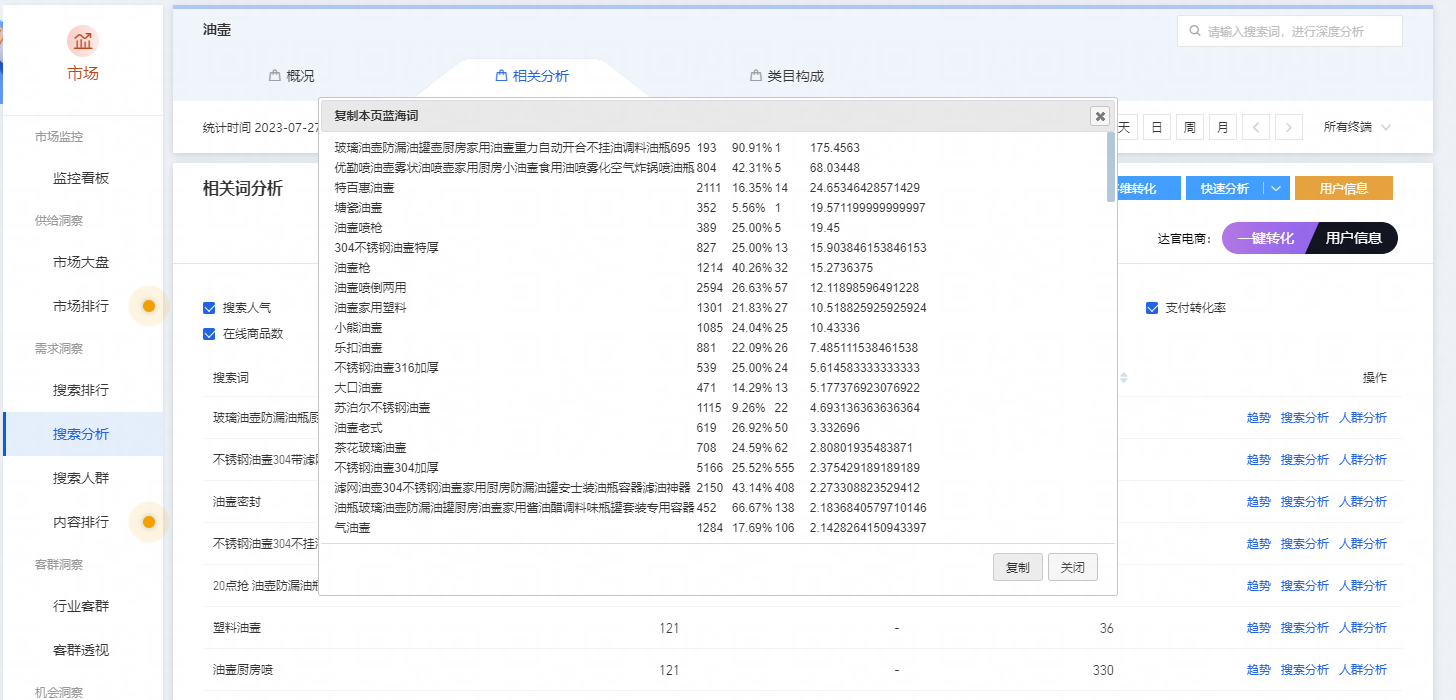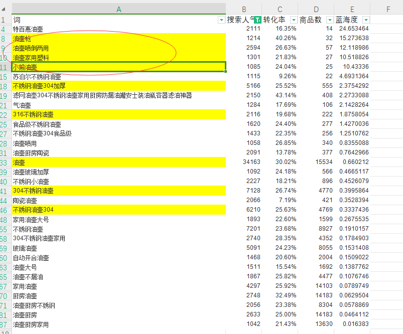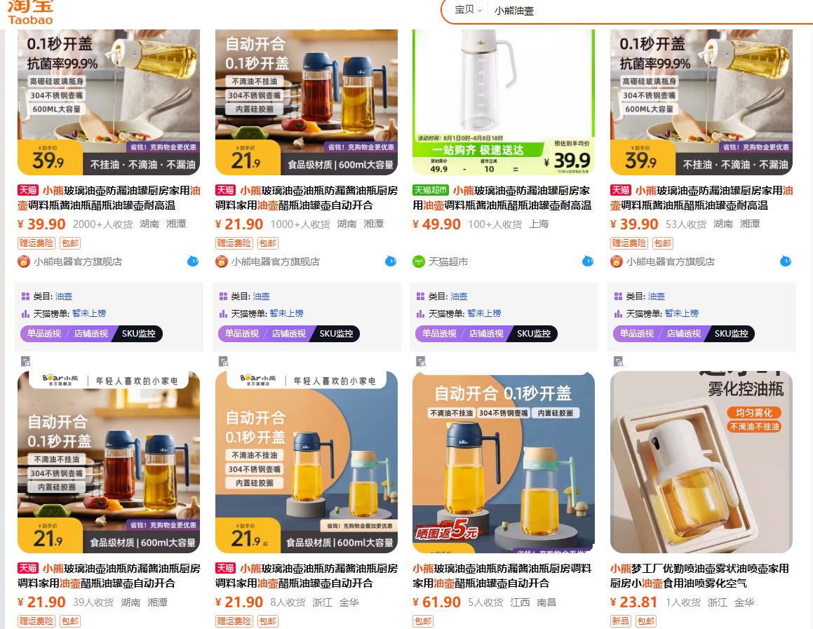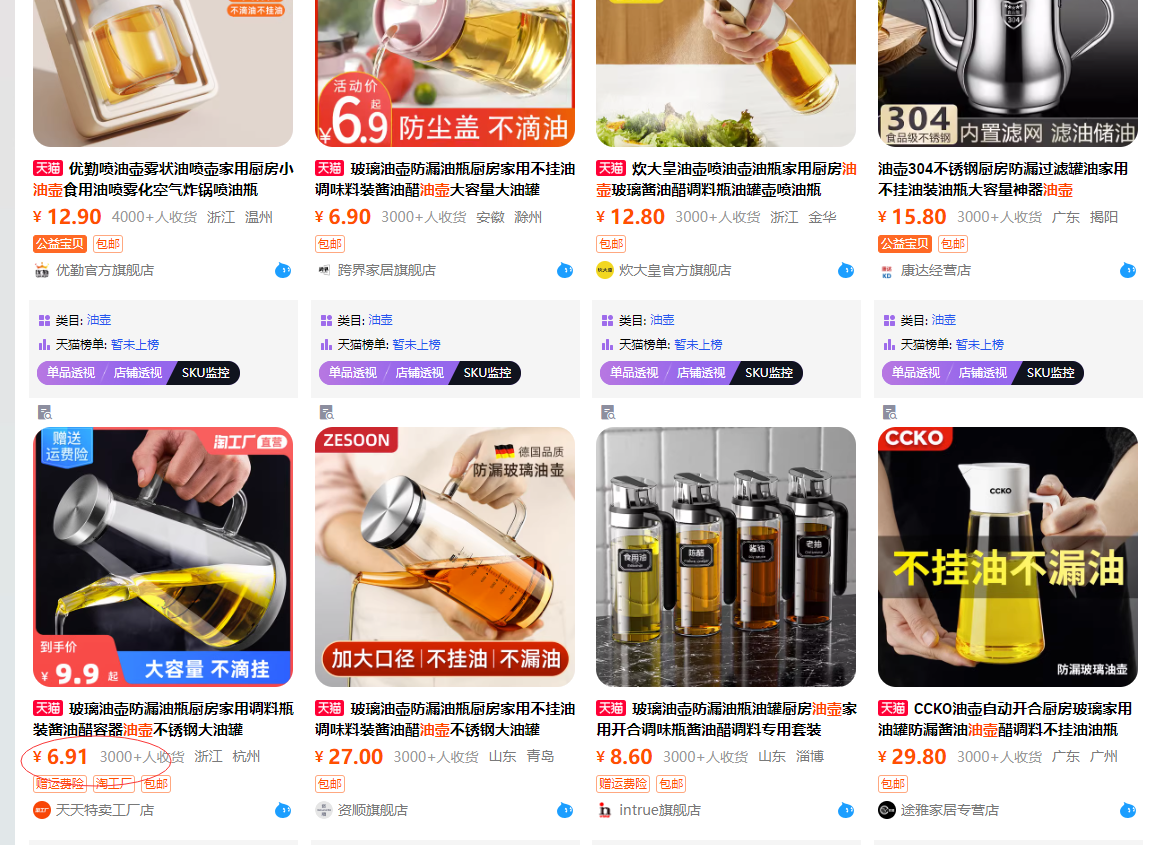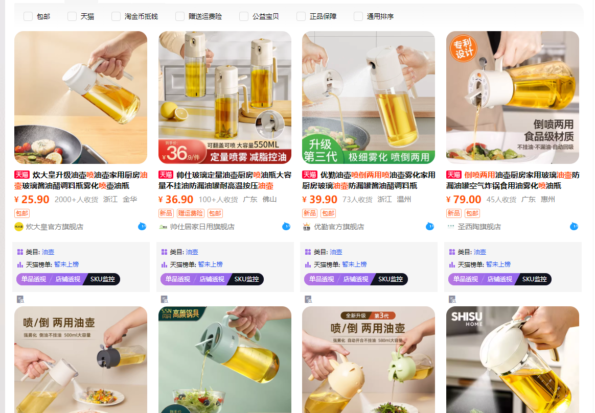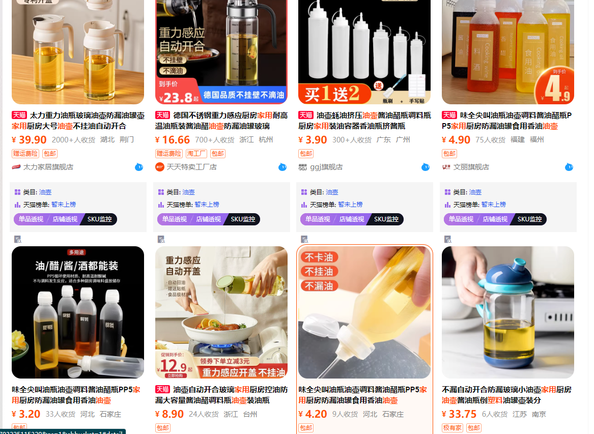 有没有啥油壶方面的小词,然后淘宝里面看别人又不咋维护,比如图一般,评价一般,销量一般(这个要打问号),去跟进