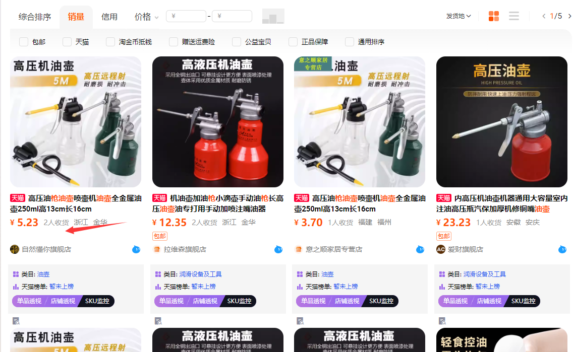 从这里可以看出来,最好的词是前面几个,油壸枪,喷倒两用,家用塑料,小熊油壸