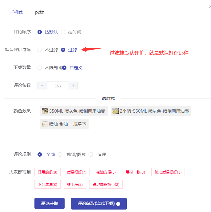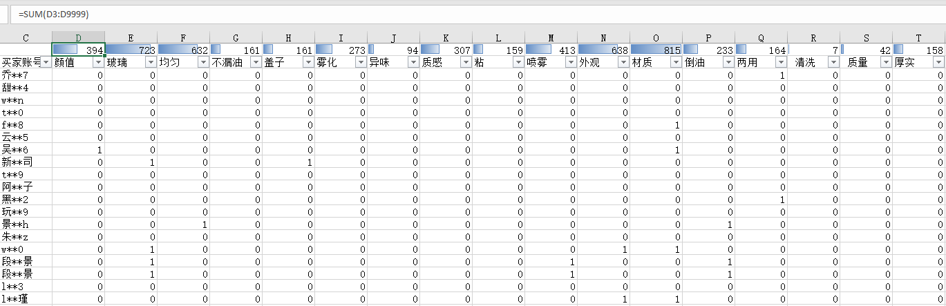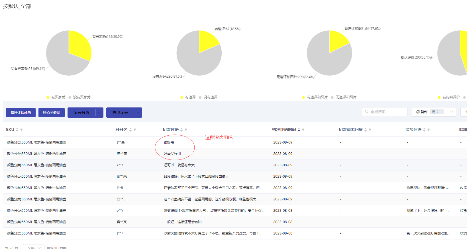 所以关于评价分析的结论是逼着眼镜挑选200条评价,顺带弄点追评,总结一些。折腾了好久发现确实没啥意义,评价重点应该关注的是差评才能了解对手啥东西没满足,差评和追评