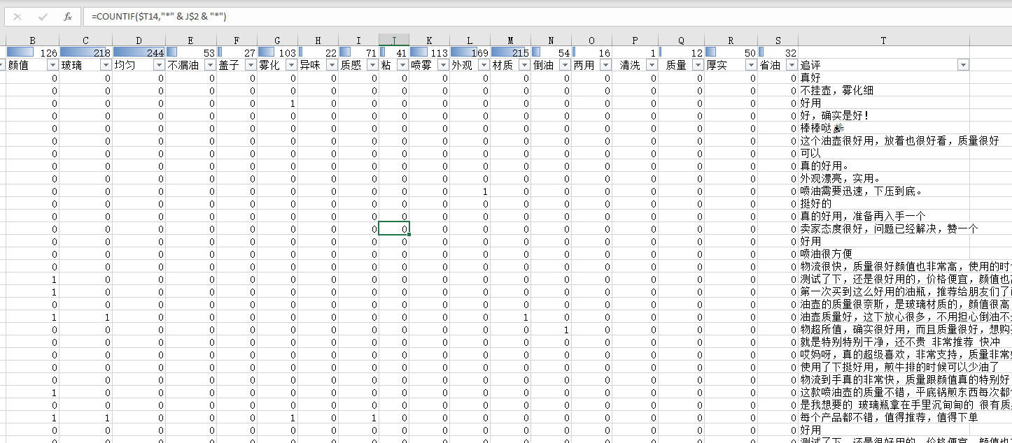 评价数据整理,上面的关键词是人工找的,为了避免叫法不同,尽量变短了