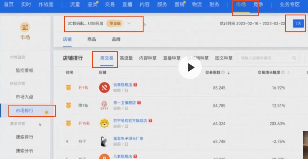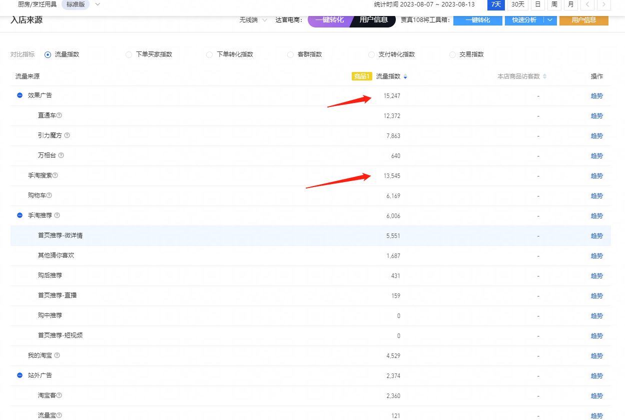 如果判断对方是搜索成交还是推荐成交为主呢,看流量结构