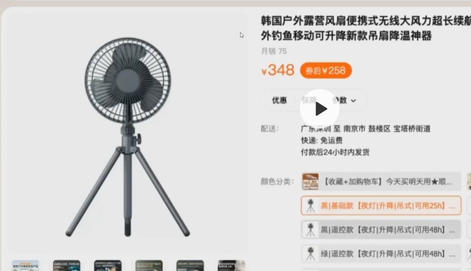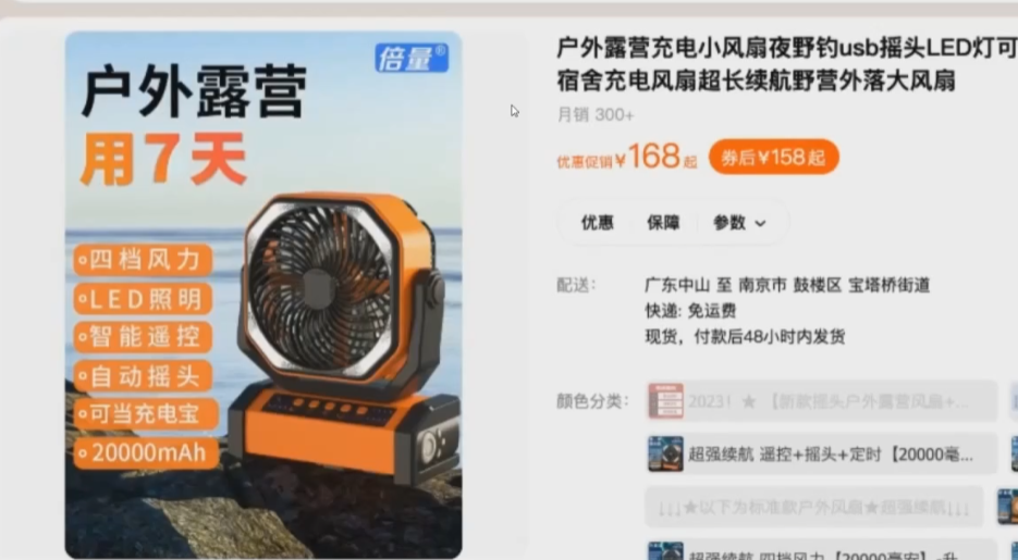 注意老师还是用 露营,原因可能是因为类目里面设置了风扇了
