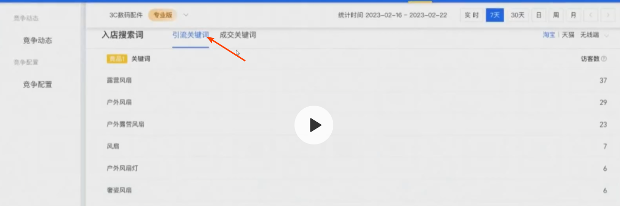- 对手主关键词,就是竞品分析里面的引流关键词