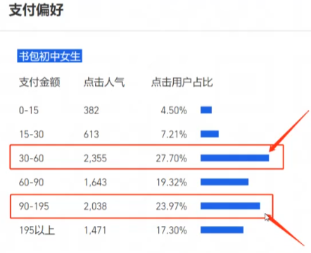 看销量排名。分别看不同价格段的竞争对手,这里是每30元一个对手系列。看下自己每个价格段自己能进前10个。