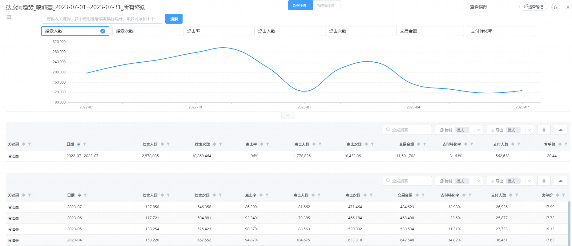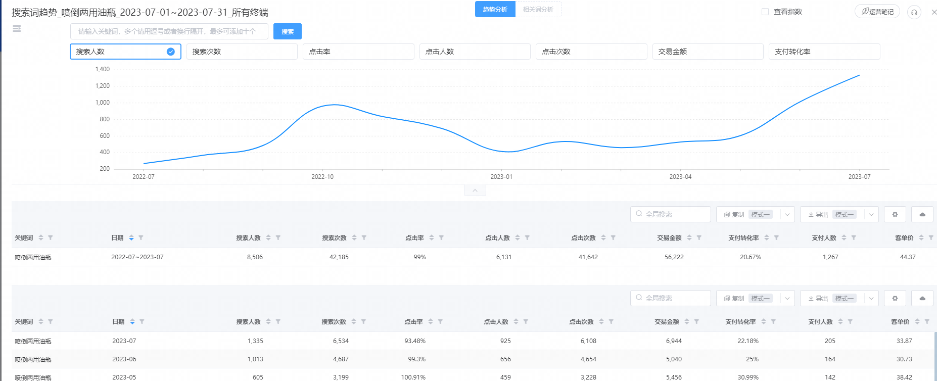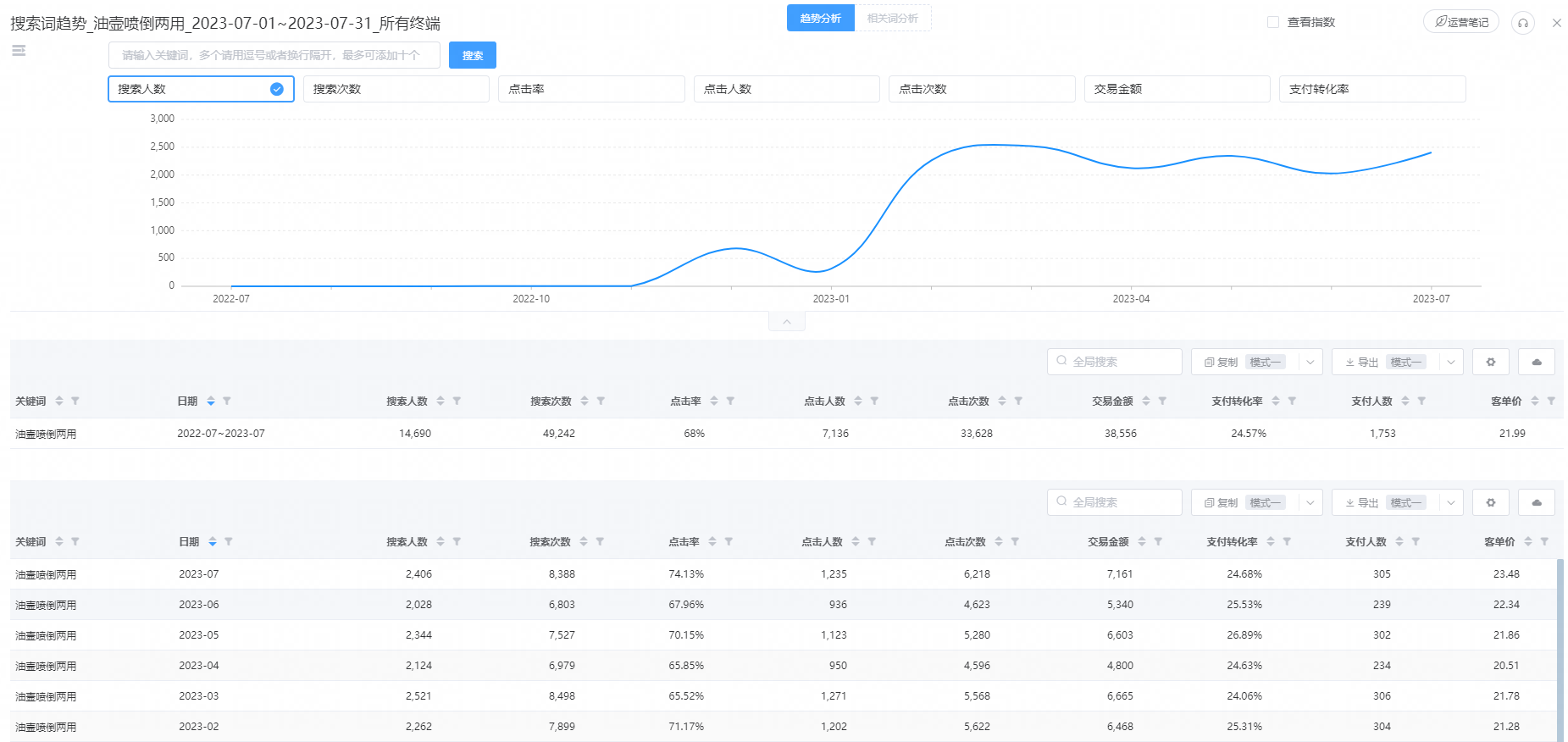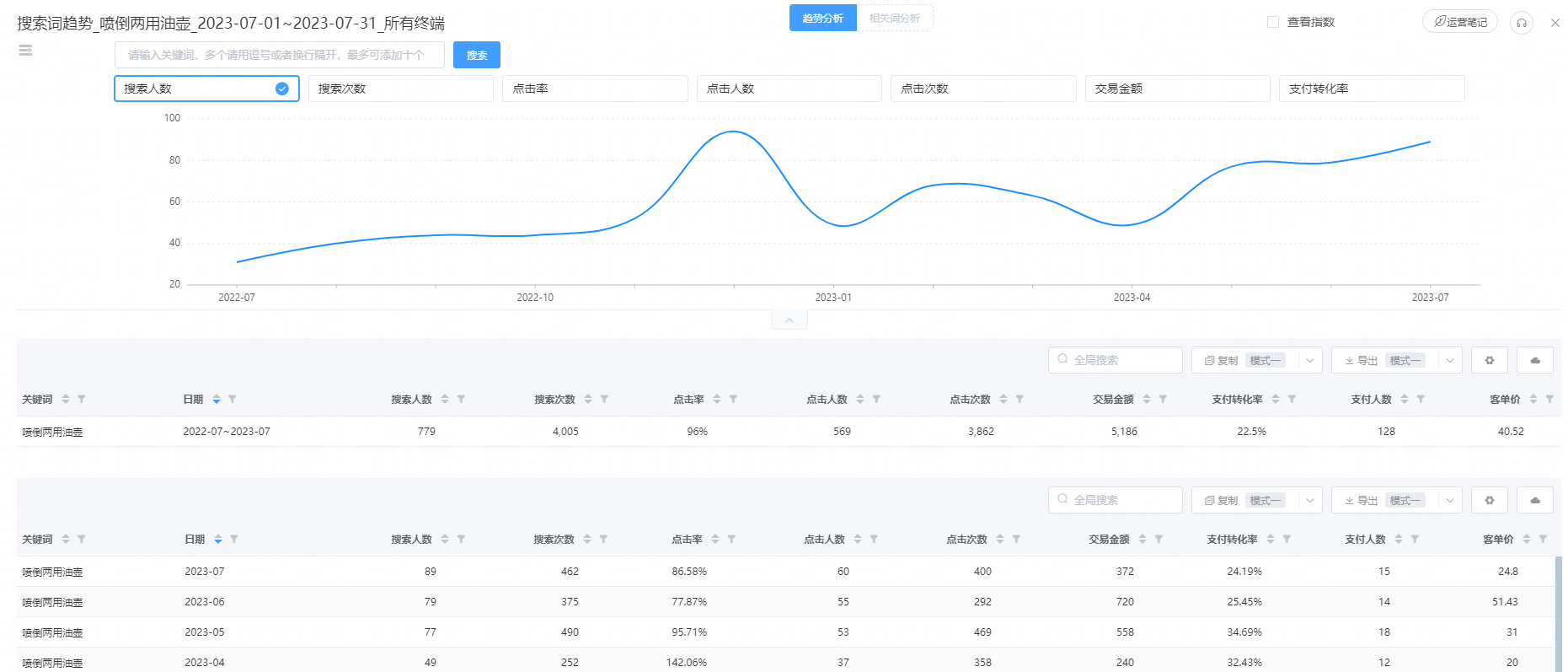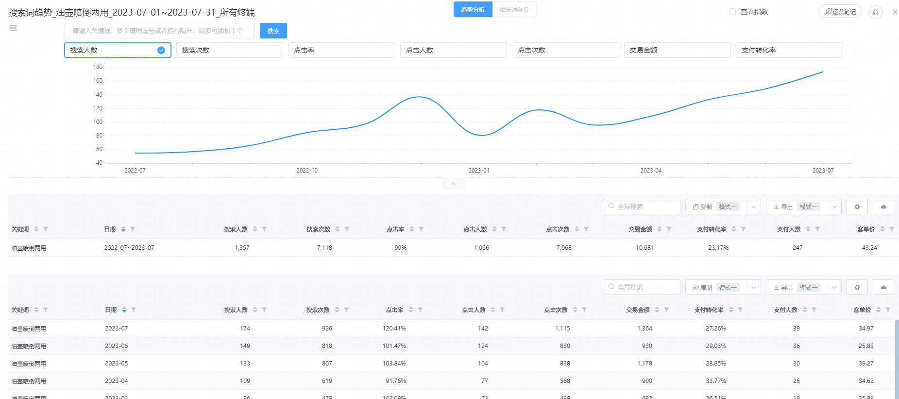 基本上,刻出来的结论就是用油壸喷倒两用这个词可以搞一下,因为它的量不大,符合我的诉求,能做到1个月100单的目标
