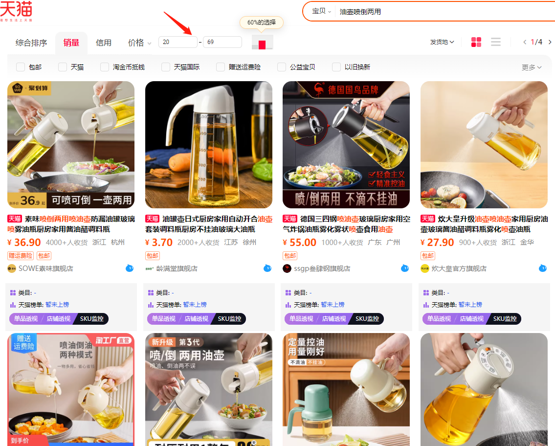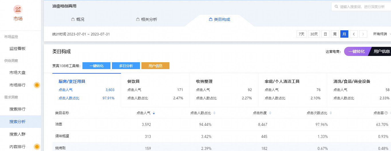 词用的是 油壸喷倒两用,类目就用 厨房/烹饪用具