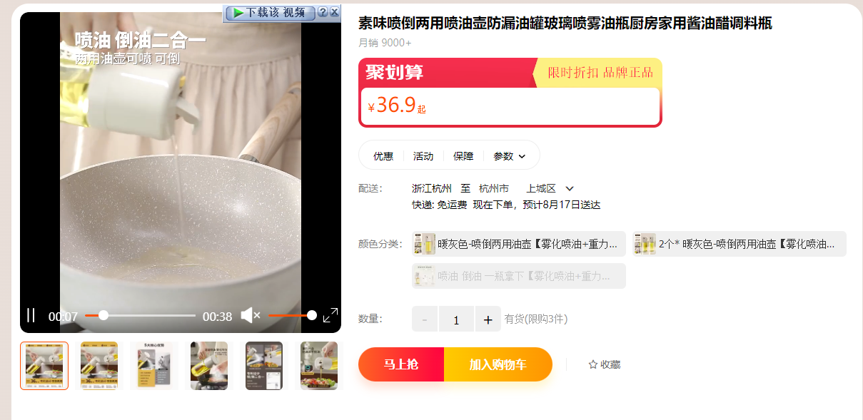 这里的高交易是整个油壶类目的,它们的喷倒两用油壶情况不一定。先看一下商品里面,加购率高的品