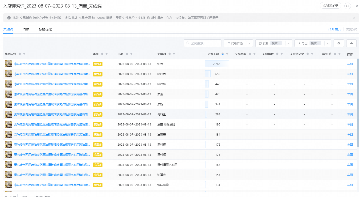 也就是说,它的引流词没有喷倒两用。但是成交的有,不是很多。大概占比1%的样子