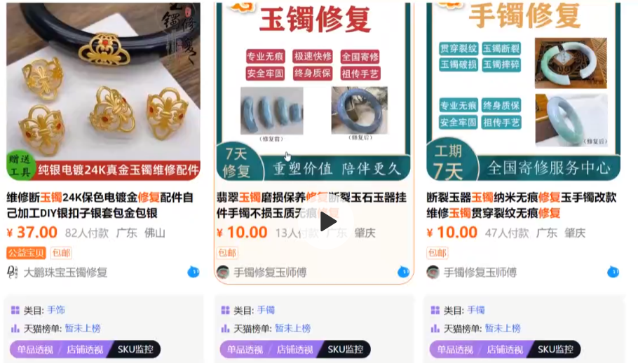 玉镯修复。大部分人不知道玉镯能修复,市场非常小,大部分的图都是玉镯图。